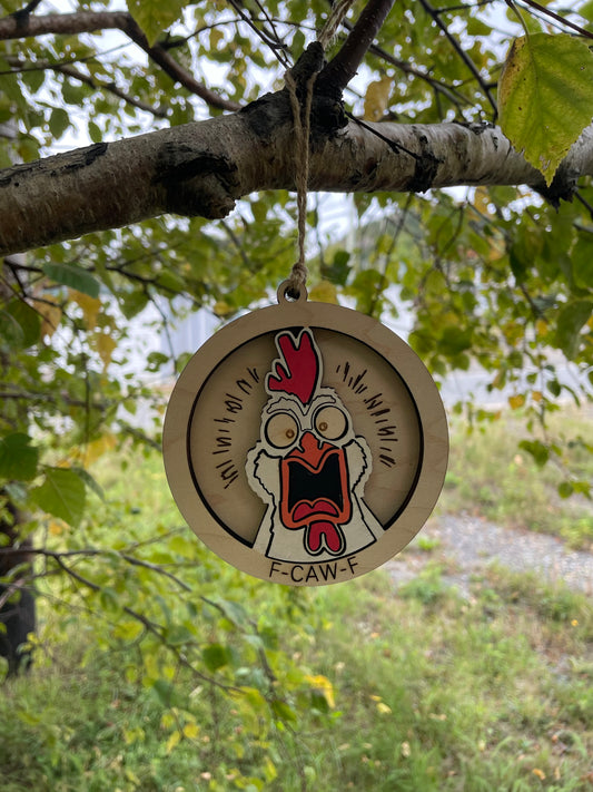 F-CAW-F Funny Chicken Ornament – Handmade Wooden Holiday Décor