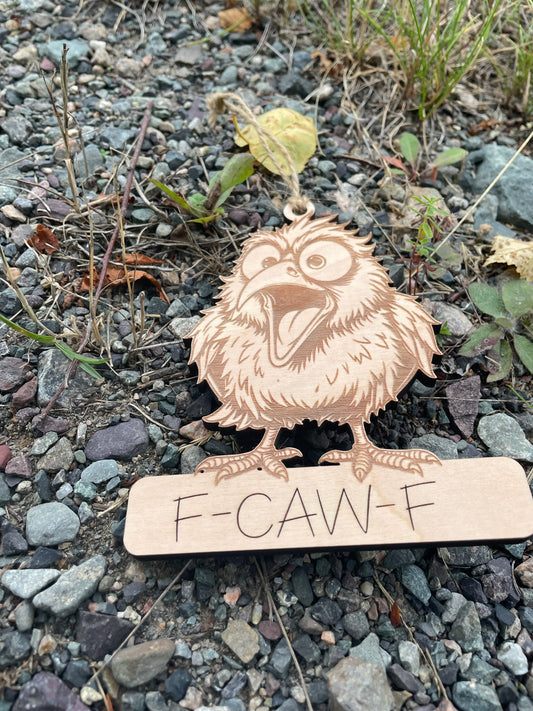F-CAW-F Funny Chicken Ornament – Handmade Wooden Holiday Décor