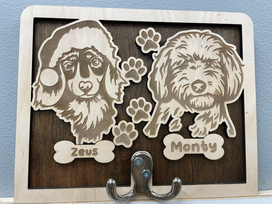 Personalized Wooden Dog Leash Holder — Wall Mount Organizer