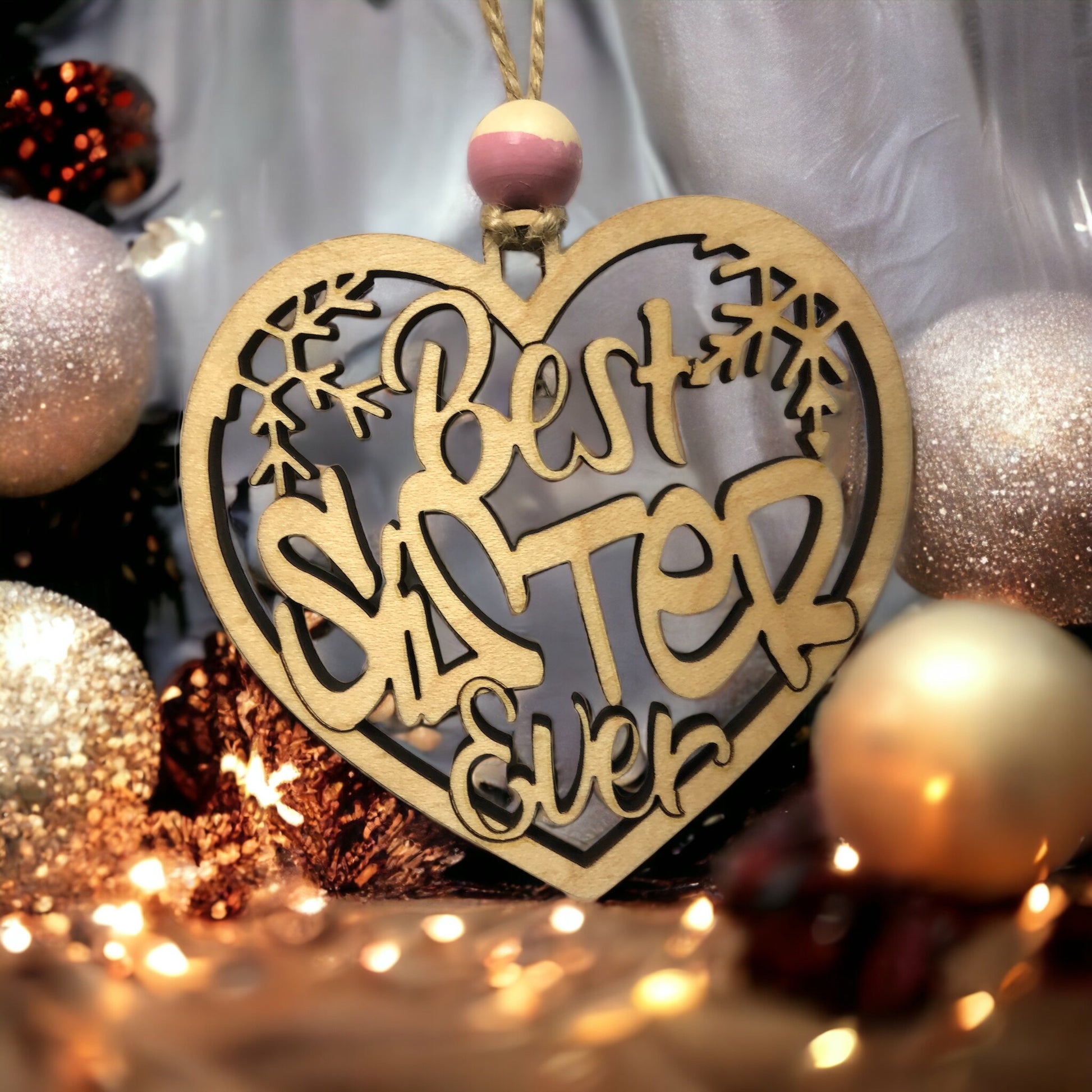 Make memories with Best Sister Ever, a unique wooden ornament made of high quality plywood. Able to withstand time, this ornament is perfect for celebrating your amazing bond with your sister and making sure it lasts for years.