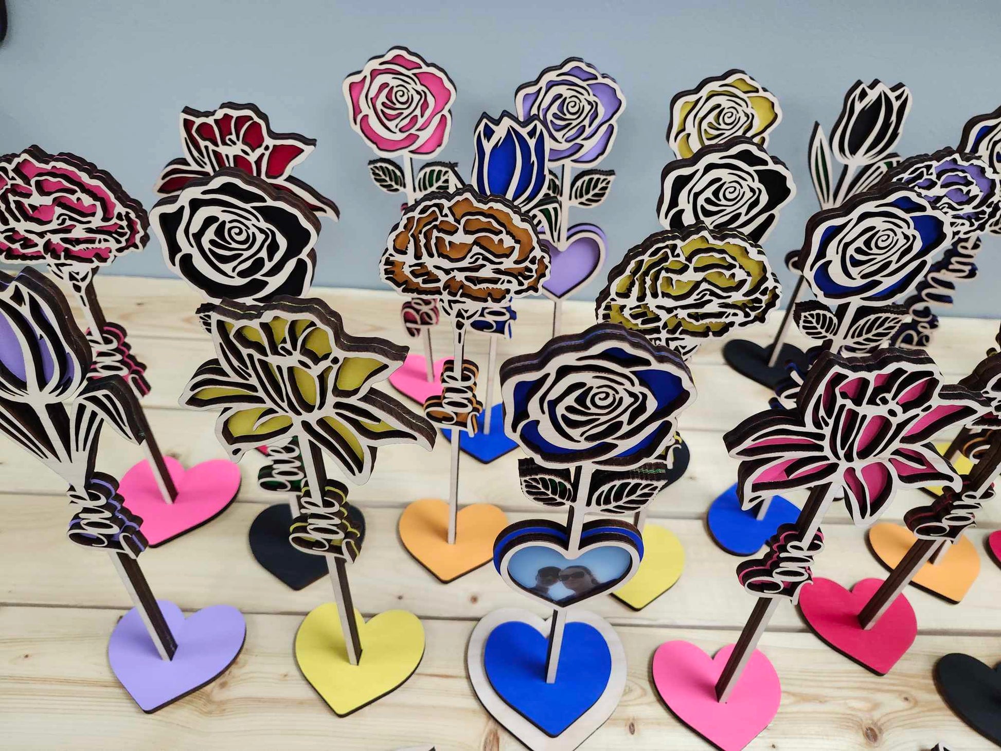 "Express your love with a Rose that lasts forever! Our laser-cut wooden flowers boast unique Valentine's Day designs and can be personalized with a name or picture. Made with love and vibrant acrylic paint on wood. (many flower variation and color available !) 🌹"
